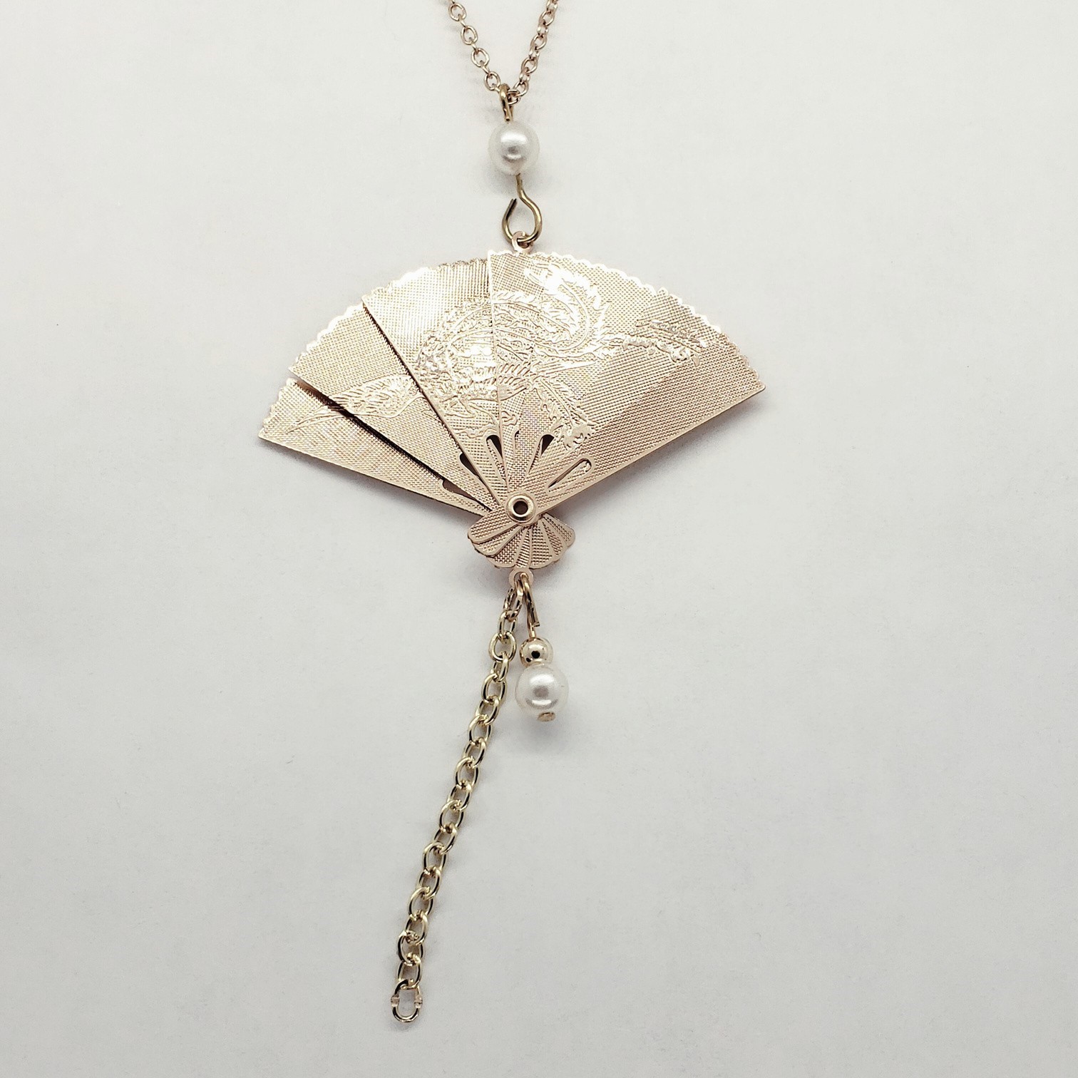 FS gold Retractable Fan necklace